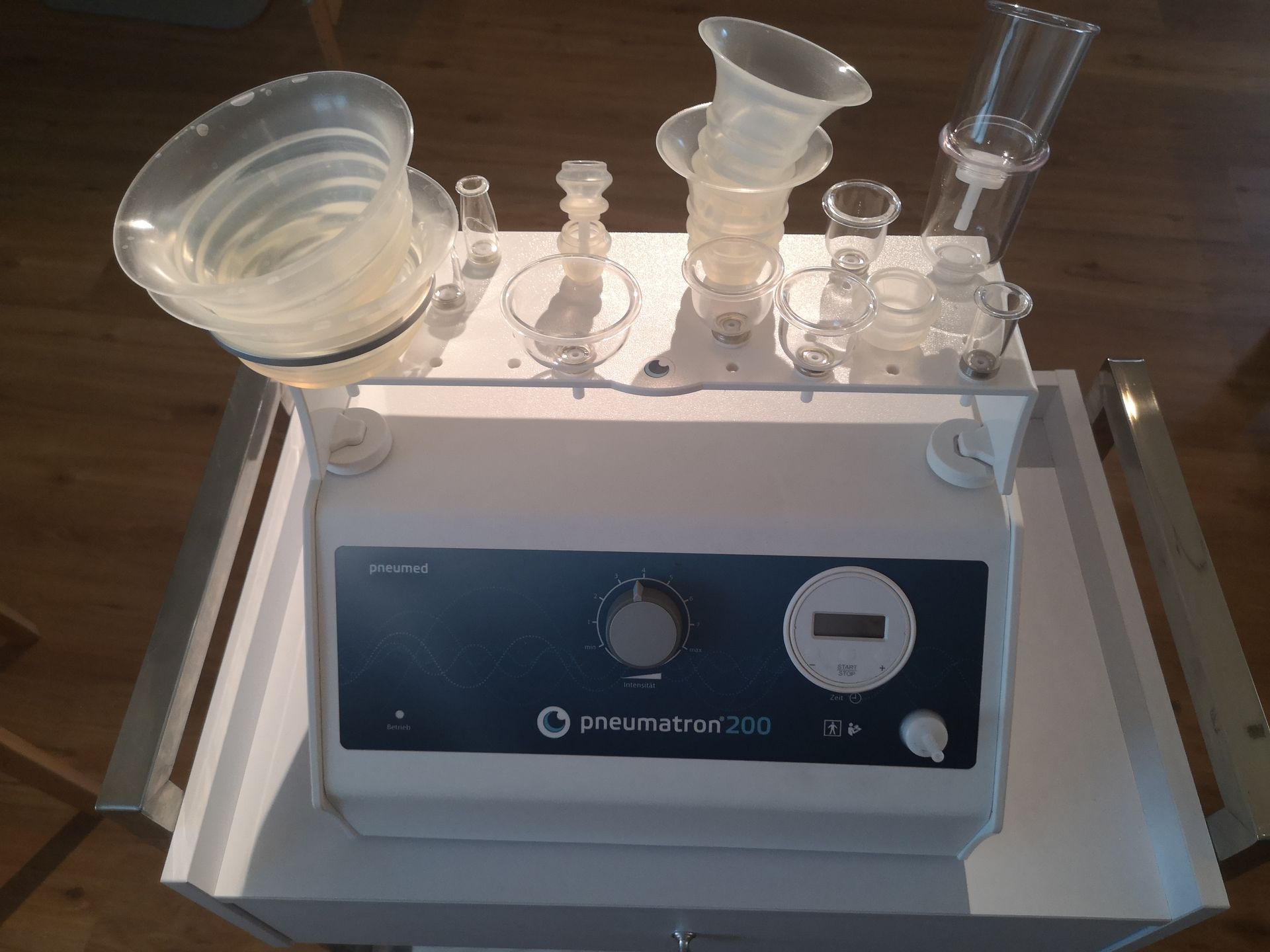 In meiner Praxis arbeite ich dafür mit dem Pneumatron 200, einem speziellen Therapiegerät, das sanft – aber effektiv – Bewegung in dein Gewebe bringt.